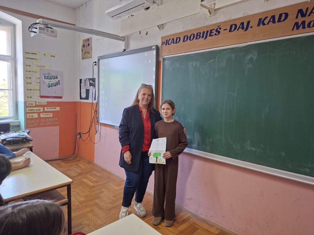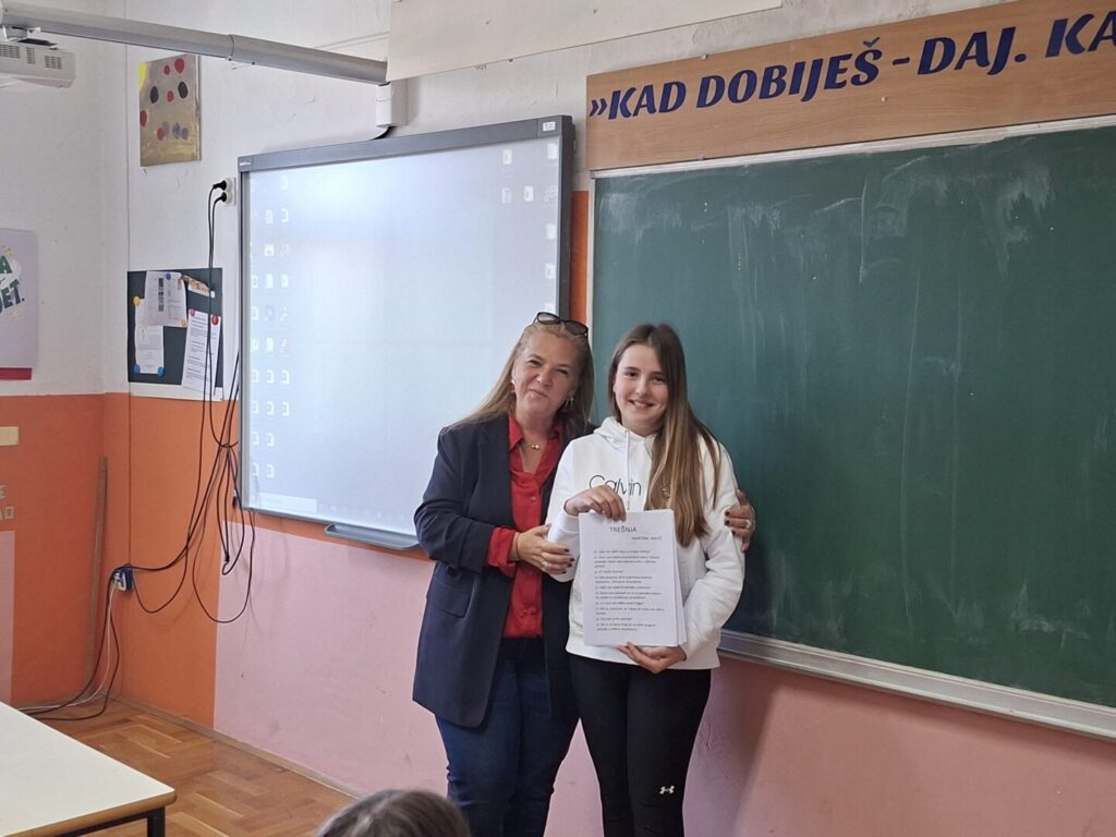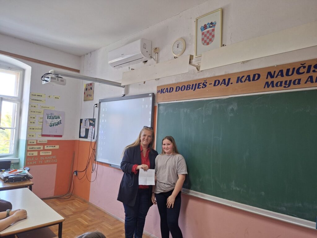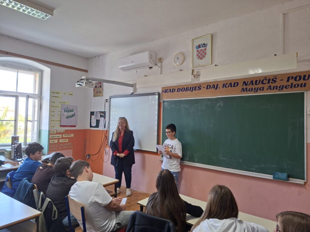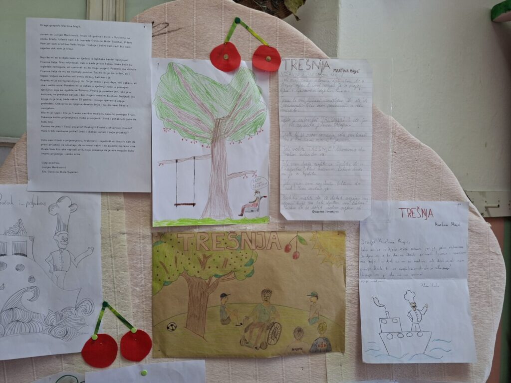 “U petak 10. travnja 2026. u prostorijama Osnovne škole Supetar gostovala je nagrađivana zagrebačko-splitska književnica Martina Majić, autorica već kultnog dječjeg romana Trešnja. Ovaj roman namijenjen petim i šestim razredima (ali ne samo njima!) govori na pitak i lijep način o izazovima djetinjstva u splitskim kvartovima, o jednom nezaboravnom ljetu u Dalmaciji, o empatiji prema potrebitima, o tome kako djeca prihvaćaju na prvi pogled različite mnogo bolje od odraslih… Učenici 5a, 5b i 5c razreda su tijekom gostovanja imali mnoštvo zanimljivih pitanja za autoricu, napisali su cijeli niz pisama koje su sami pročitali, a na kraju je priređen i kviz u kojem je pobjedu odnio Matia Dujmović, učenik 5a razreda kojem je književnica poklonila knjigu s posvetom. Zahvale idu i našim vrijednim profesoricama Hrvatskog jezika Tei Delli Croce i Tei Fabris Matulić čiji su učenici knjigu Trešnja pročitali za lektiru te imali za nju same riječi hvale. Autorica, inače ugledna dizajnerica interijera, ovu je knjigu posvetila svojim pravim junacima: sinovima Karlu i Franku. Ovom prilikom zahvaljujemo Martini Majić na lijepom i ugodnom književnom druženju!”